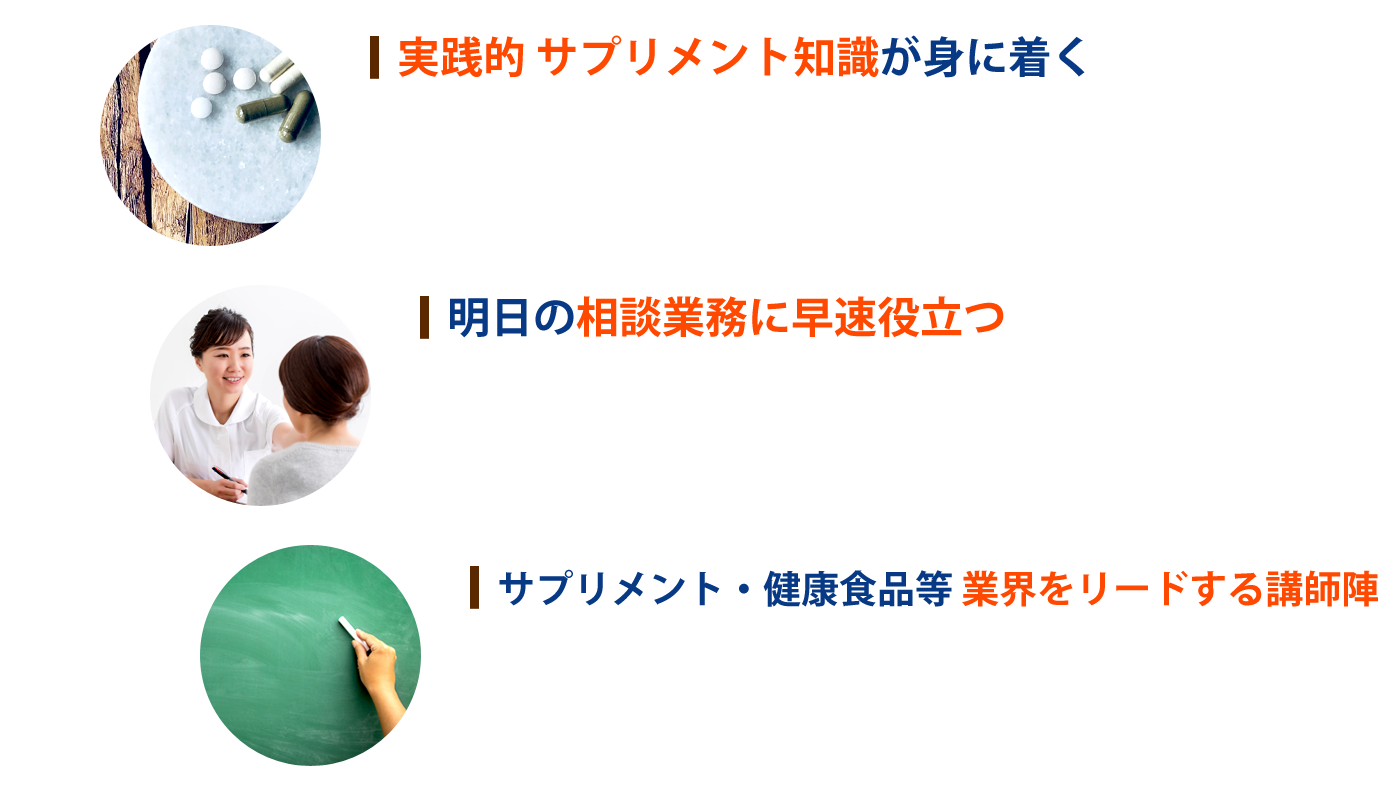 薬剤師の業務の一つとして、サプリメントや健康食品の摂取状況を聞き取り、 飲み合わせの確認を行うことが義務付けられています。 多様化する情報を正しく判断するためにも、多くの講座を受講し、 サプネットで得た実践的な学びを業務にいかしてください。